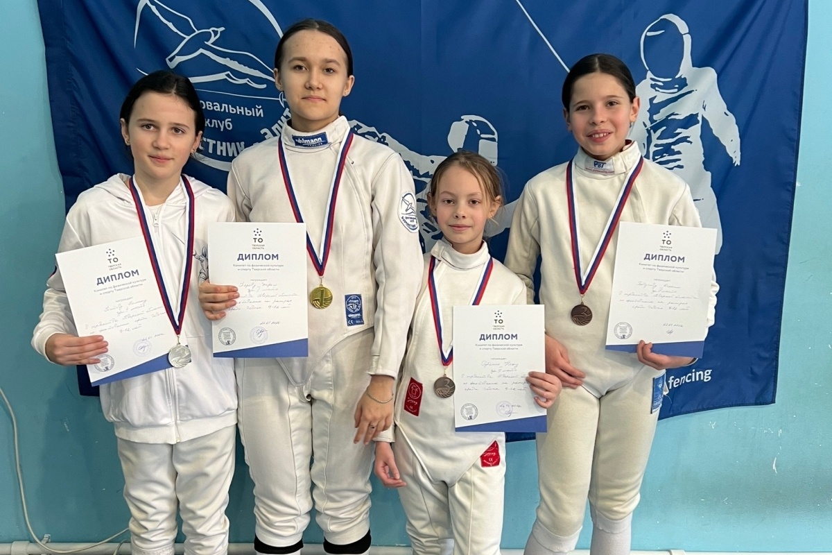 По итогам поединков на рапирах определились обладатели четырех комплектов наград. В Твери завершилось первенство области по фехтованию на рапирах среди мальчиков и девочек 9-12 и юношей и девушек 13-15 лет. В поединках за награды региональной пробы друг с другом сошлись воспитанники муниципальной СШОР «Лидер» города Твери. По итогам соревнований определились обладатели четырех комплектов медалей. Юноши 13-15 лет. 1. Гвоздев Дмитрий (тренер Воротникова О.А.). 2. Гуслянников Клим (тренер Воротникова О.А.). 3. Попиков Станислав и Тишинин Тимофей (тренер Воротникова О.А.), Девушки 13-15 лет. 1. Зуева Василиса (тренер Воротникова О.А.). 2. Ежова Мария (тренер Воротникова О.А.). 3. Заикина Виктория (тренер Немыгина О.Г.) и Леончук Диана (тренер Тулова С.А.) . Мальчики 9-12 лет. 1. Тулов Денис (тренерТулова С.А.). 2. Фунтяков Дмитрий (тренер Немыгина О.Г.). 3. Швецкий Юрий (тренерТулова С.А.) и Пучкунов Георгий (тренер Воротникова О.А.), Девочки 9-12 лет. 1. Перова Дарья (тренер Воротникова О