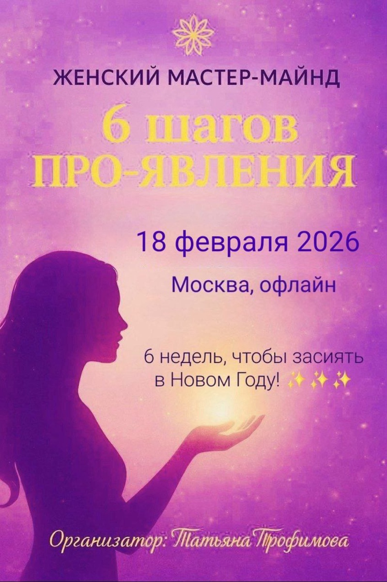 ЖЕНСКИЙ МАСТЕР-МАЙНД «6 ШАГОВ ПРО-ЯВЛЕНИЯ» 🤍 🗓 Старт: 18 февраля 2026 📍 Формат: комбинированный — живые встречи в Москве + онлайн ⏳ Длительность: 6 недель, 2 часа 👥 Группа: до 10 участниц (отбор по заявкам) 🌿 О формате Мастер-майнд «ПРО-ЯВЛЕНИЕ» — это пространство для женщин, которые готовы осознанно выйти на новый уровень самореализации, проявить себя, свои идеи и проекты — мягко, устойчиво и в поддержке. Формат уже прошли две группы участниц, и за 6 недель каждая получила свой результат: — у кого-то выросли и оформились проекты, — у кого-то изменился вектор движения, — у кого-то появилась внутренняя опора и смелость действовать и проявляться. 🌷 Кому подойдёт мастер-майнд? Женщинам из разных сфер: психологи, коучи, мастера телесных практик, организаторы, маркетологи, стилисты, косметологи, нутрициологи, мастера творчества и хендмейда. Здесь важно не профессия, а желание проявиться! 💎 Формат «6 шагов ПРО-ЯВЛЕНИЯ» 1️⃣ «Я чувствую» — Моё предназначение и ценность; 2️⃣ «Я прин