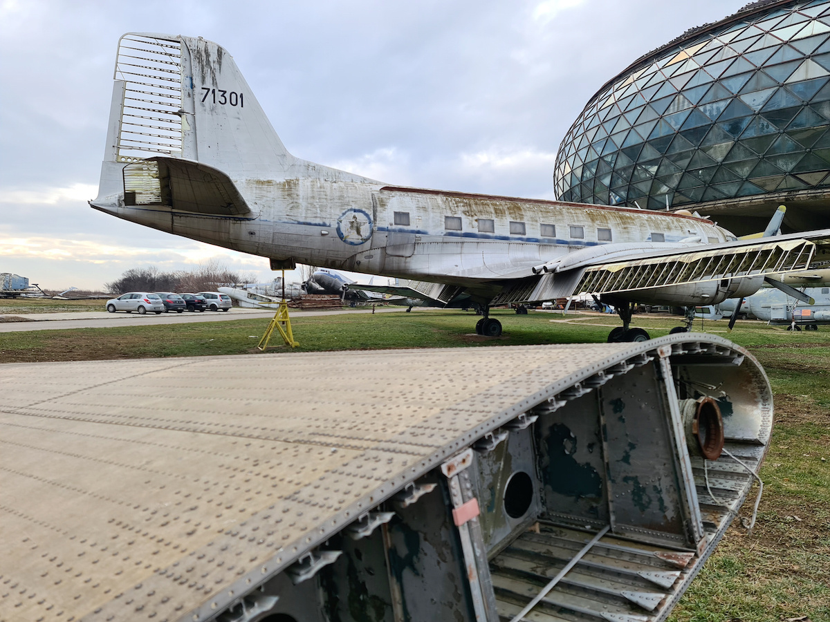 Вряд ли можно назвать эти экземпляры полноценными экспонатами музея, скорее всего это «надежда» на будущее. А вот для авиационного энтузиаста, инженера или студента авиационного вуза это возможность познакомиться с конструкцией самолета вблизи и без тканевой обшивки. Фюзеляж с отстыкованными крыльями. Стабилизатор многолонжеронной конструкции, хорошо видны узлы навески руля высоты. Киль и руль направления с триммером, а также вышка КДП белградского аэропорта им. Николы Теслы. Зализы оперения. Моноблочное крыло. Хорошо видны два из трех лонжеронов и фланцевый стык. Где-то внутри консоли крыла... Элерон с триммером. Еще один Дуглас с состыкованными крыльями. А теперь Ил-14... Хвостовое оперение. Закрылок. Элерон. Реально "немузейное" состояние этих весьма заслуженных самолетов требует дополнить данную публикацию обзорами реальных, комплектных и "живых" DC-3 и Ил-14...