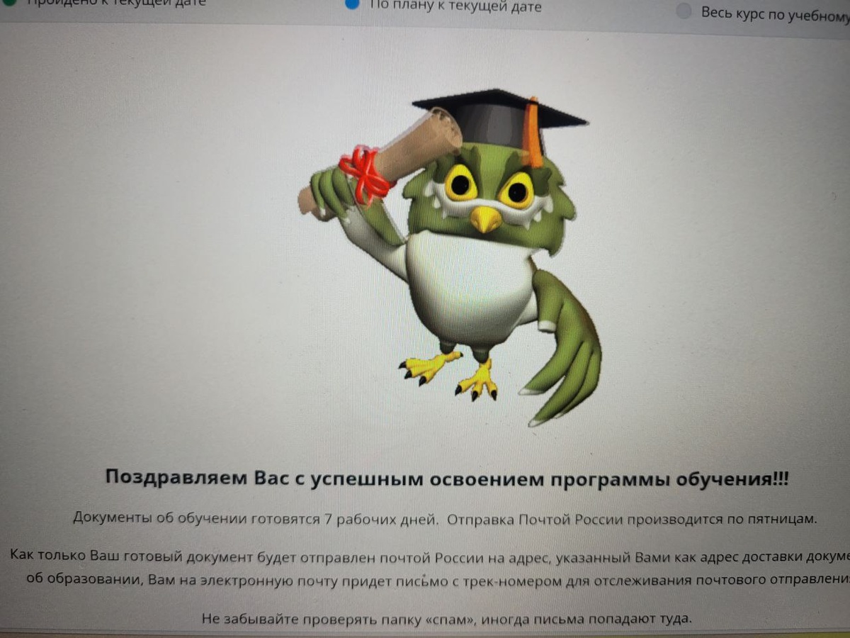 Этот приятный юноша говорит о том, что сегодня я завершила повышение квалификации по программе "АРТ-терапия в индивидуальном психологическом консультировании) (144 акад.часа)