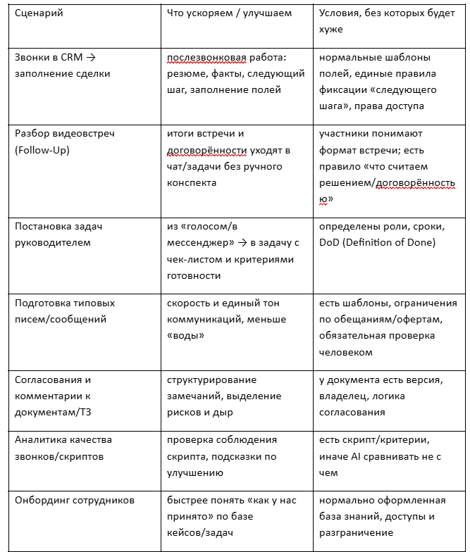 2. Где AI даёт эффект: 7 сценариев, которые обычно окупаются