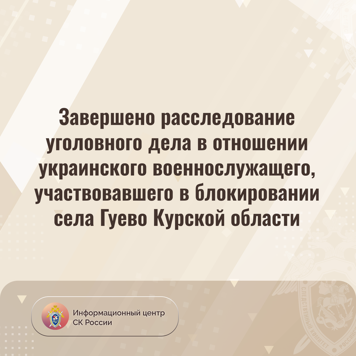 Завершено расследование уголовного дела в отношении украинского военнослужащего, участвовавшего в блокировании села Гуево Курской области