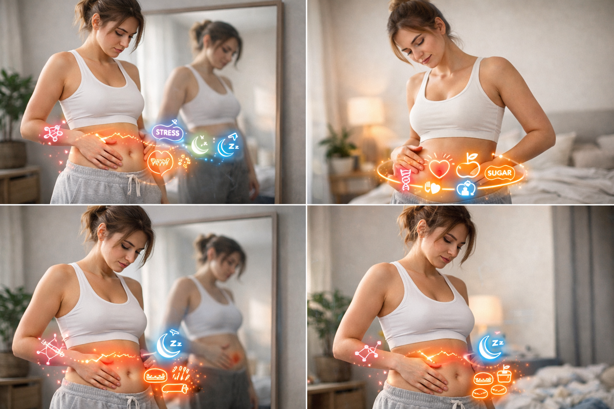 Гормон стрессаХронический стресс держит кортизол высоким. А он разрушает мышцы, накапливает жир на животе и повышает аппетит. Жёсткие диеты — тоже стресс! Признаки проблем:• «Спасательный круг» на та