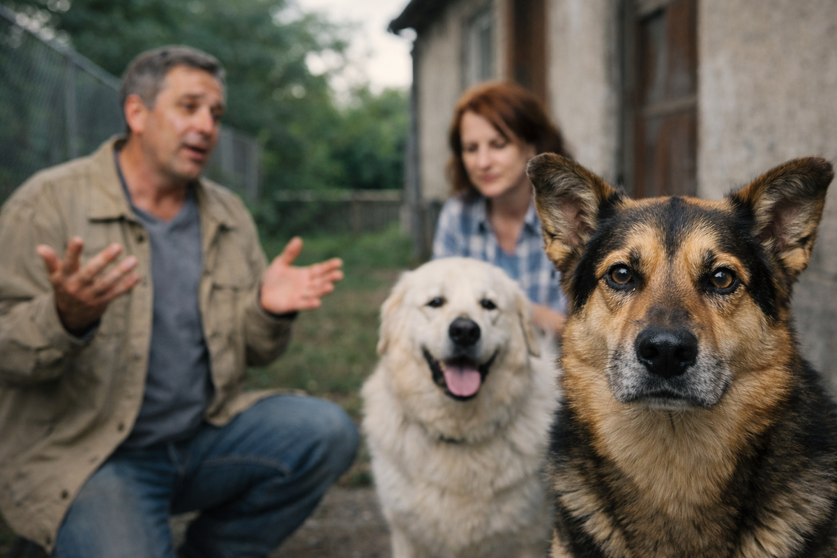 А рядом стоял хозяин — шумный, бодрый, с голосом “я сейчас вам всё объясню, как оно в жизни бывает”. И пока пёс молчал глазами, хозяин говорил ртом.