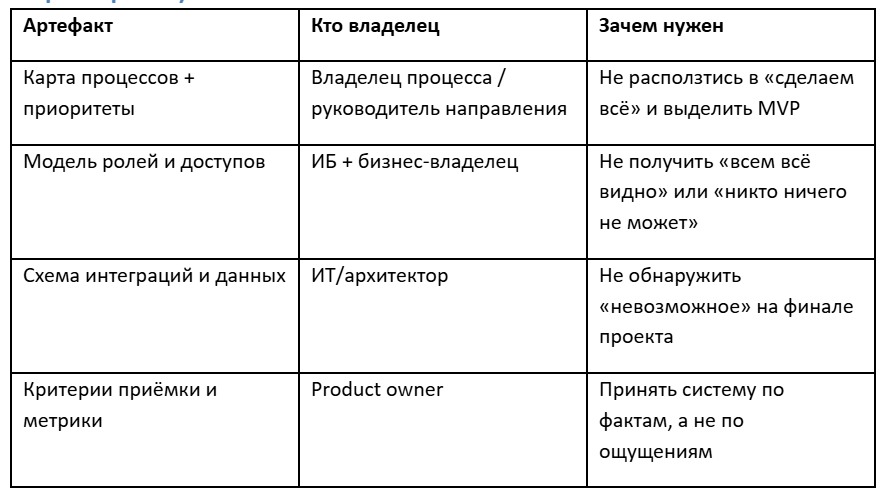 Минимальный набор артефактов (если их нет — риск перерасхода почти гарантирован)