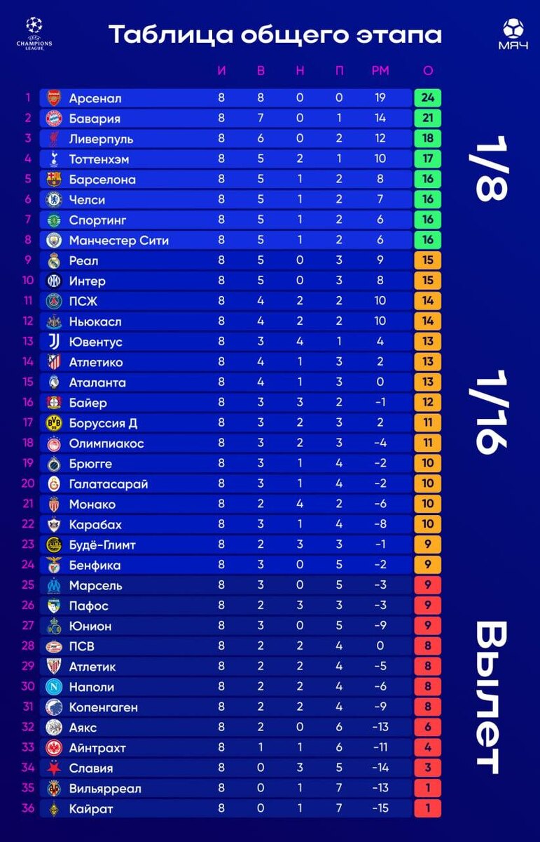 Итоги последнего тура ЛЧ Начался тур бодро – голы посыпались сразу. У «Барсы» были проблемы, а Килиан Мбаппе побил рекорд Криштиану Роналду. После первого тайма таблица выглядела так, а за 15 минут до финиша так. Герои последних минут – «Спортинг», выбивший из топ-8 «Реал» голом на 95-й минуте, и «Бенфика», которая благодаря голу вратаря тому же «Реалу» на 98-й минуте влетела в топ-24. Вы не поверите, но при счете 3:2 команда Жозе Моуринью зачем-то тянула время. На этом фоне даже немного потерялись проходы в плей-офф «Карабаха» и «Будё-Глимт». Прикол дня: «Реал» и «Бенфика» могут сыграть снова уже в 1/16. Вероятность – 50%. Апсет дня: вылет «Марселя», вероятность прохода которого в топ-24 была 94,6%. «Везунчик» дня: «ПСЖ», который в случае прохода в 1/8, сыграет с «Барселоной» или «Челси». На той же стадии возможен матч «Реал» VS «Сити». Как вам это безумие? @myach | 🎤 Реакция Сани на это безумие