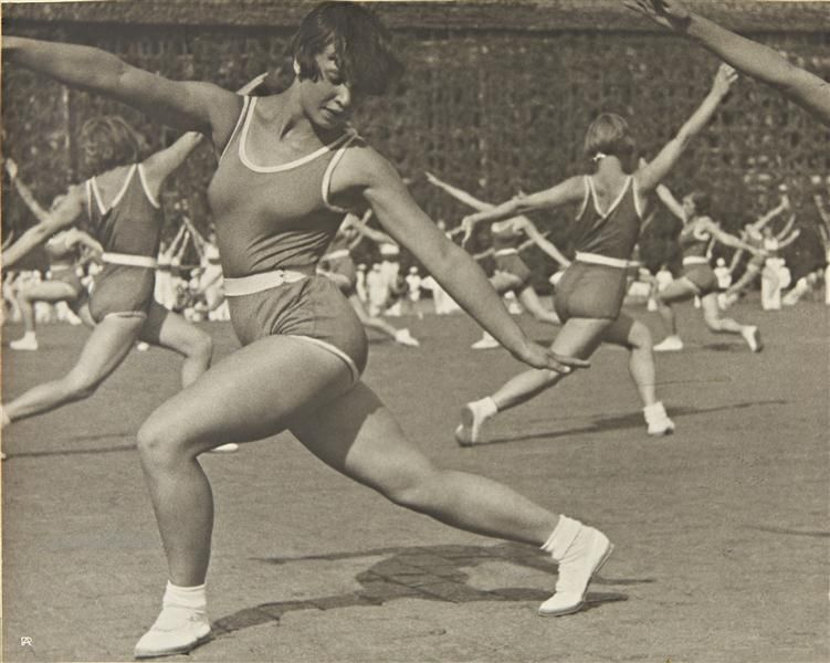 Спорт стал важной частью этого восстановления. Девочки на параллельных брусьях — это новое поколение, которое либо не знало войны, либо коснулось её лишь краем детской памяти.