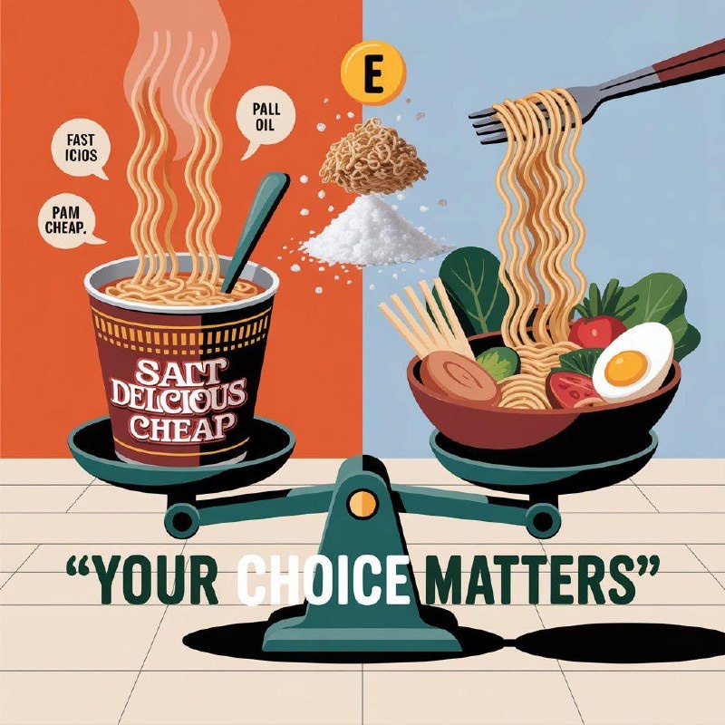 ? Лапша быстрого приготовления — это удобно, дёшево и привычно. Но что на самом деле скрывается за этим перекусом? Давайте разберёмся! Что внутри? 🔹 Углеводы – основа лапши (мука, крахмал), дают быструю энергию, но ненадолго. 🔹 Жиры – часто пальмовое масло, которое в больших количествах может влиять на обмен веществ. 🔹 Соль – в одной порции может быть до 70-80% дневной нормы! Это нагрузка на сердце и сосуды. 🔹 Добавки – усилители вкуса (глутамат натрия), консерванты, стабилизаторы. В малых дозах они безопасны, но регулярное употребление может раздражать ЖКТ. Чем опасна регулярная еда "из стаканчика"? ✔ Лишний вес – много калорий, но мало питательной ценности. ✔ Повышенное давление – из-за избытка соли. ✔ Проблемы с ЖКТ – сухая лапша тяжело переваривается, а специи раздражают слизистую. ✔ Дефицит витаминов – в такой еде почти нет клетчатки, белка и микроэлементов. Как сделать лапшу менее вредной? ✅ Добавьте овощей (морковь, капуста, зелень) – это клетчатка и витамины. ✅ Полож