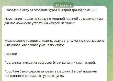 ! Евгений прошёл психологический практикум «Финансовый прорыв 2026». Фокус был на том, что одинаково влияет и на доход 100к, и на 300к: ⏺финансовые ограничения и потолки ⏺сценарии нестабильности ⏺разрешение на рост и масштаб ⏺переход из режима «зарабатывать» в режим «управлять доходом» Работа длилась 5 недель, изменения начали происходить уже в процессе практикума. Впервые год начался с ~100 000₽ свободных средств на счету ⏺Консультаций стало больше и с более высоким чеком ⏺Запущен первый практикум с коллегой - все участники оплатили ⏺Появились несколько источников дохода, а не один нестабильный Ключевой сдвиг: «Я стал востребованным. Оказалось, за мной наблюдают и ждут. Люди готовы идти со мной в трансформацию.» Это тот момент, когда вы: ➡️ перестаёте сомневаться в своей ценности ➡️ перестаёт жить от прихода к приходу ➡️ начинаете осознанно выстраивать рост Если вы уже зарабатываете 100–200 000₽+, но чувствуете, что: ⏺деньги есть, но они нестабильны ⏺ каждый месяц по-разно