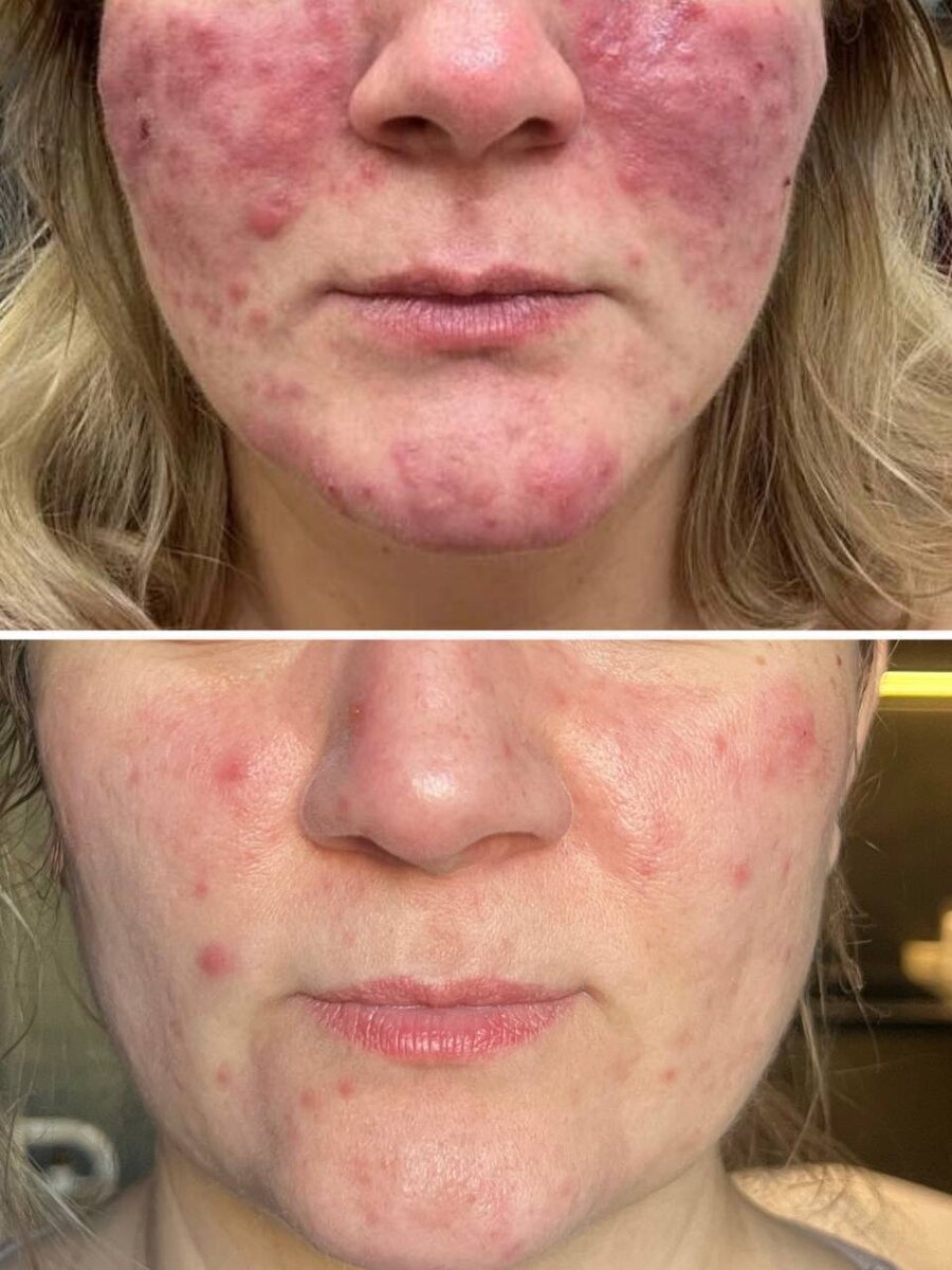 📰 В научно-практическом журнале «Вестник Медицинского института непрерывного образования» вышла моя статья по этой теме ☝🏻 Фиматозный подтип - очень сложный Именно он характеризуется: 💢 Утолщением эпидермиса, 💢 Шишкообразными разрастаниями мягких тканей носа, лба, подбородка, ушей, щёк В большинстве случаев пациентов с такой картиной отправляют к хирургу - иссекать кожу 🔪 Да, можно дождаться такого направления Например, когда формируются опухолевидные разрастания из-за прогрессирующей гиперплазии сальных желёз и соединительной ткани Это тот самый «шишковидный нос», который многие видели Что значит хирургическое вмешательство? 1️⃣ Инвалидизация кожи 2️⃣ Шрамы 3️⃣ Рубцы При этом хирург не лечит розацеа, он лишь удаляет последствия. Болезнь продолжает прогрессировать, а значит ситуация может повториться вновь 🔄 Динамика улучшений при фиматозном подтипе - торпидное, длительное, тяжёлое Пациентам сложно сохранять веру в процесс и не сворачивать с пути патогенетического лечен