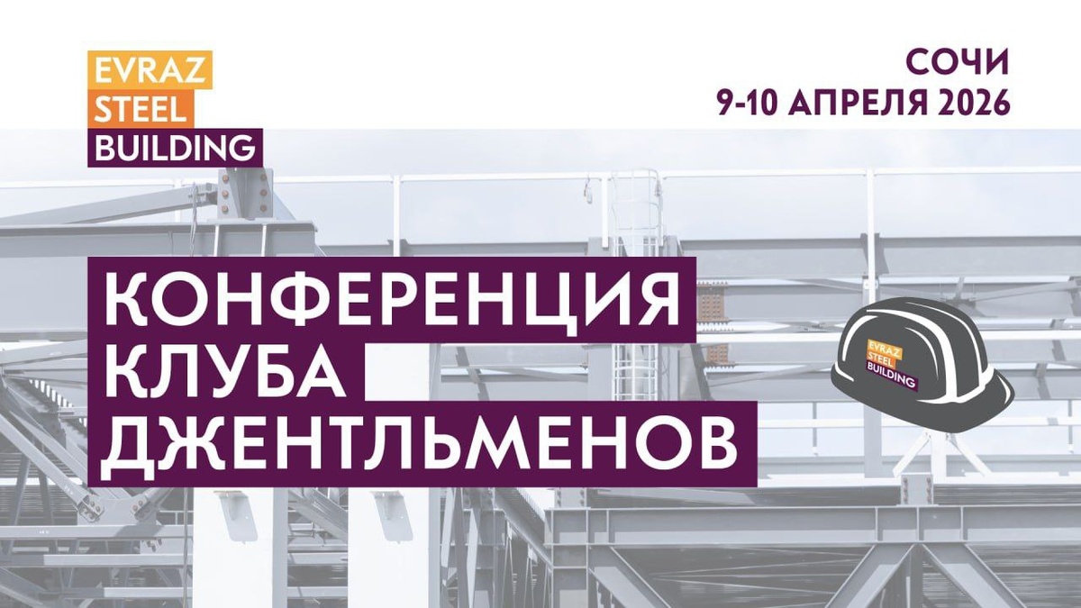 Компания EVRAZ STEEL BUILDING приглашает вас на партнерскую “Конференцию Клуба джентльменов”. Мы собираем тех, кто не просто работает на рынке металлоконструкций, а задаёт в нём правила. Не упустите шанс стать частью главного отраслевого события года. Дата: 9-10 апреля 2026 г. Место: Краснодарский край, Сочи, пгт. Сириус, ул.Голубая, д. 1. Конференц-зал премиум-отеля Mantera Resort & Congress По вопросам участия в мероприятии обращаться к Самариной Екатерине моб. тел.: +7 (915) 283-91-02, Ekaterina.Samarina@evrazsteel.ru ЗАРЕГИСТРИРОВАТЬСЯ НА КОНФЕРЕНЦИЮ В рамках двухдневной деловой программы, совместно с участниками конференции, мы разберем процесс создания уникальных технически сложных инфраструктурных объектов на стальном каркасе, формирование новых рыночных условий, обусловленных присутствием системного заказчика в отрасли, перераспределение рынка и его сегментацию. На практических кейсах покажем способы создания оптимального технологического потока в процессе реализации проекта с