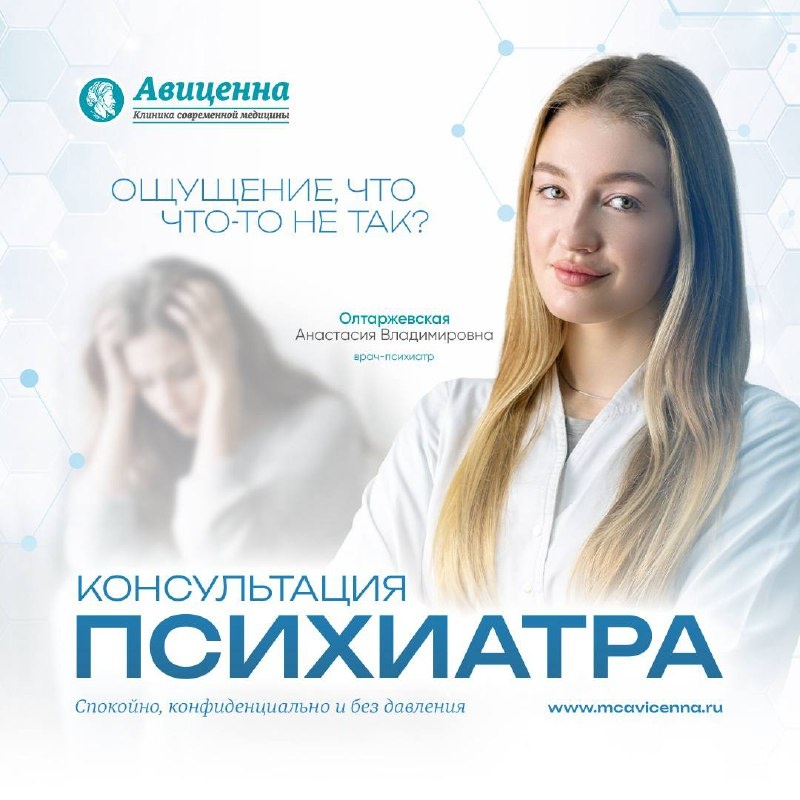?🥺 Вы вроде бы справляетесь: ходите на работу, общаетесь, улыбаетесь. А внутри — тревога, усталость, плохой сон, раздражение или пустота. И мысль: «Наверное само пройдет» часто не проходит. К психиатру стоит идти не тогда, когда «уже край», а когда стало тяжело жить как раньше: 🔹 тревога или подавленность не отпускают; 🔹 сон сбился и не восстанавливается; 🔹 эмоции выходят из-под контроля или будто исчезли; 🔹 мысли пугают , мешают спать и крутятся в голове без остановки; 🔹 радость от жизни пропала. Психиатр — это не про «страшные диагнозы». Это про помощь, поддержку и нормальное объяснение того, что с вами происходит. В клинике «Авиценна» ведет прием врач-психиатр Олтаржевская Анастасия Владимировна 👩🏼⚕️ Спокойно, конфиденциально и без давления — чтобы вам действительно стало легче 🤍