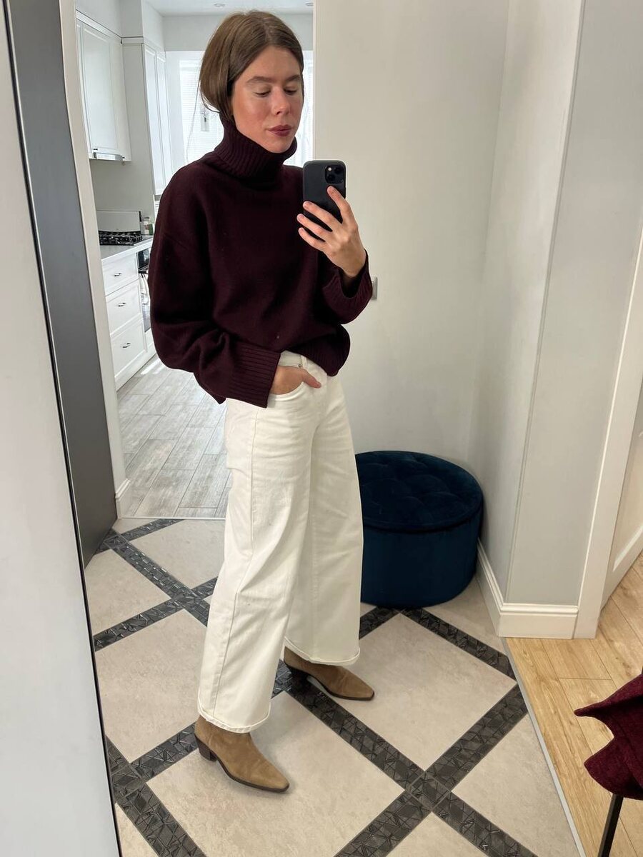 !! Осенью и зимой они выглядят особенно стильно и свежо И если на улице сухо- то смело носим! Круто комбинируются с любой обувью и трикотажем👌🏻 Носите зимой белые джинсы? Делитесь своими образами⤵️ #вдохновение #цветотерапия