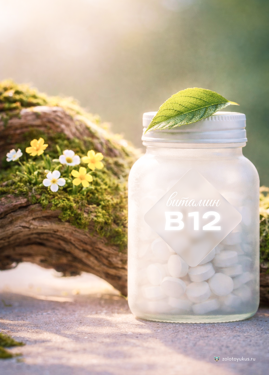 Витамин B12 (кобаламин) - это незаменимое вещество, которое участвует в двух важных процессах: создании ДНК (основы всех наших клеток) и формировании защитной оболочки нервов (миелина). Его нехватка нарушает работу кроветворения и нервной системы. Этот витамин мы обычно получаем из продуктов животного происхождения: яиц, молочных продуктов, мяса, печени, рыбы.