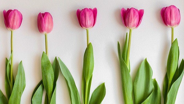 #тюльпаны #розовый #белый #фон #лепестки #стебли #бутоны #свежий #весенний #однотонный #контраст #минимализм #макросъемка #свет #тень