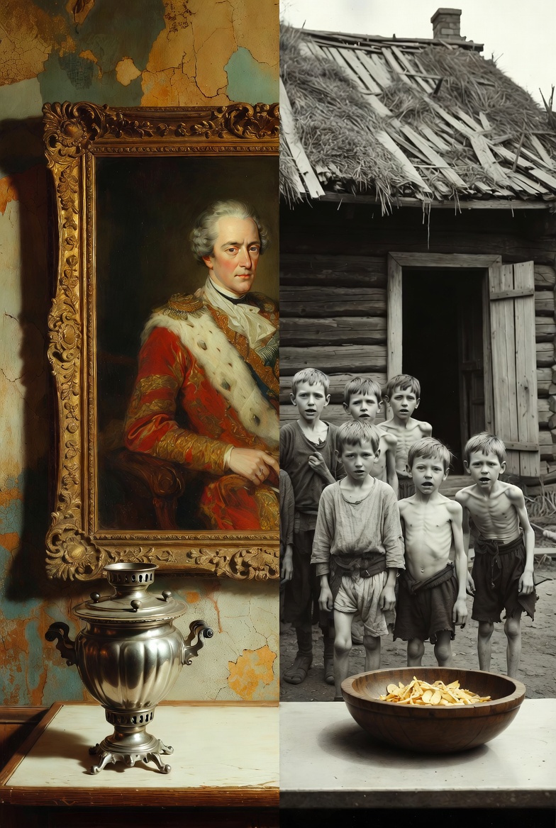 В современном российском дискурсе, среди прочих идеологических суррогатов, затесался один особенно живучий призрак. Призрак сытой, благостной, могущественной империи, которую, якобы, бездарно разбазарили злые силы. Миф о том, что «при царе жили лучше». Это не просто историческое заблуждение — это удобная сказка, сшитая из лоскутов дворянских мемуаров, позолоты храмов и упорного нежелания видеть, на чём на самом деле стояло это «великолепие». Давайте, наконец, ткнём носом в реальность этого «рая». Часть 1: Идиллия, выстроенная на голоде Самый любимый аргумент адептов мифа — Россия была житницей Европы! Царь продавал хлеб за границу! Звучит мощно, имперски. Пока не задашь простой вопрос: а за счёт чьего желудка осуществлялась эта славная торговля? Ответ лежит не в тайных архивах, а в царской же статистике и воспоминаниях офицеров. Бедняком считался крестьянин, у которого хлеб заканчивался до Рождества. Середняком — у кого зерно иссякало до Пасхи. И лишь тот, у кого еды хватало от урожая