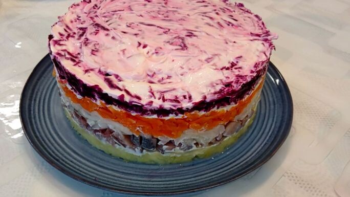 Селёдка под шубой . Самый классический рецепт , и думаю самый вкусный. Если Вы любите Селёдку под шубой , то будем готовить. Что нам понадобится : 2 рыбки ( филе ) 2 отварные свёклы 2 моркови 3 картошки 2 г лука ( я мариную так вкуснее ) Майонез Если Вы как я люблю делать салат из рыбы не готовой филе. То нужно разделать рыбку ,очистить от кости и нарезать кубиком. Лук я режу полукольцами м мариную . Овощи отвариваем ,очищаем и натираю сразу непосредственно в салат. Первым слоем я натираю картофель и смазываю майонезом , так вкуснее. Картофель пропитывается рыбкой. Второй слой рыбка и на рыбку без майонеза кладем лучок. На лучок кладем морковь, и смазываем майонезом. Последний и последний слой идет свёкла. Смазываем майонезом. Я не добавляю яйцо и яблоко. Люблю по классике для меня так вкуснее . Всем приятного аппетита ! Мой канал на Ютуб: http://www.youtube.com/@kavkaznadezhda