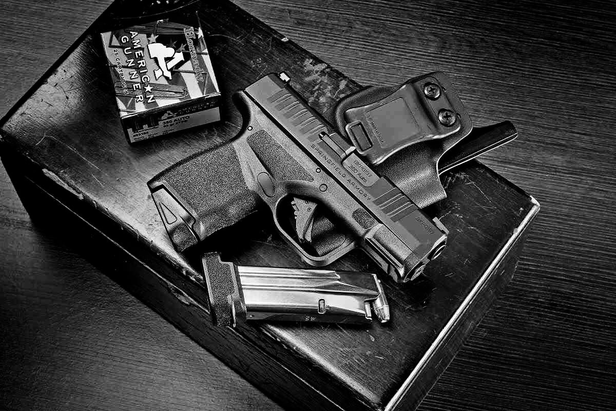 На фото был пистолет. Совершенно обычный с виду Hellcat .380 — полимер, сталь, матово-черное покрытие Melonite. Но на первом снимке его лежал на столе в испытательном тире, на втором — в руке человека в лабораторном халате, а на третьем… на третьем он один висел в темноте баллистической камеры, и его зеленая тритиевая мушка светилась в полной темноте ровным, неестественно ярким светом, будто не отраженным, а собственным.