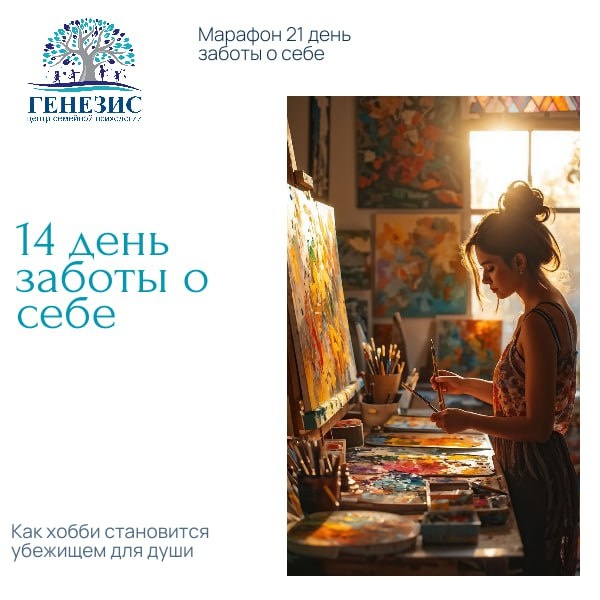 День 14. Играть, чтобы жить: как хобби становится убежищем для души Добрый день, наши увлеченные участники марафона! 🎨 Мы много говорили о важных практиках: саморегуляции, границах, работе с мыслями. Сегодня — день легкой, но невероятно глубокой радости. День, когда забота о себе принимает форму творчества, игры и увлеченности. День, чтобы вспомнить или открыть свое хобби. Хобби — это не просто «чем убить время». Это важнейший психологический инструмент самовосстановления. В состоянии потока, когда вы полностью поглощены интересным делом, мозг отдыхает от тревог, самооценка растет, а внутренний критик замолкает. Почему хобби — это акт заботы? Возвращает к себе: В повседневной рутине мы часто действуем по ролям (сотрудник, родитель, партнер). Хобби — это пространство, где вы существуете просто для себя, по своим правилам. Лечит выгорание: Созерцательный или творческий процесс — прямая противоположность стрессу. Он наполняет энергией, которую забирают обязанности. Дает опыт масте
