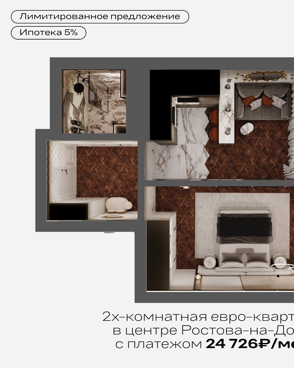 ». Показываем, как она может выглядеть в реальной жизни. По специальным условиям, такая квартира обходится от 24 726₽/мес. Без сложных формулировок и мелкого шрифта. Успейте воспользоваться до удорожания проекта. Условия действуют на ограниченное количество квартир. +7(863) 204 35 15 доннефтестрой.рф