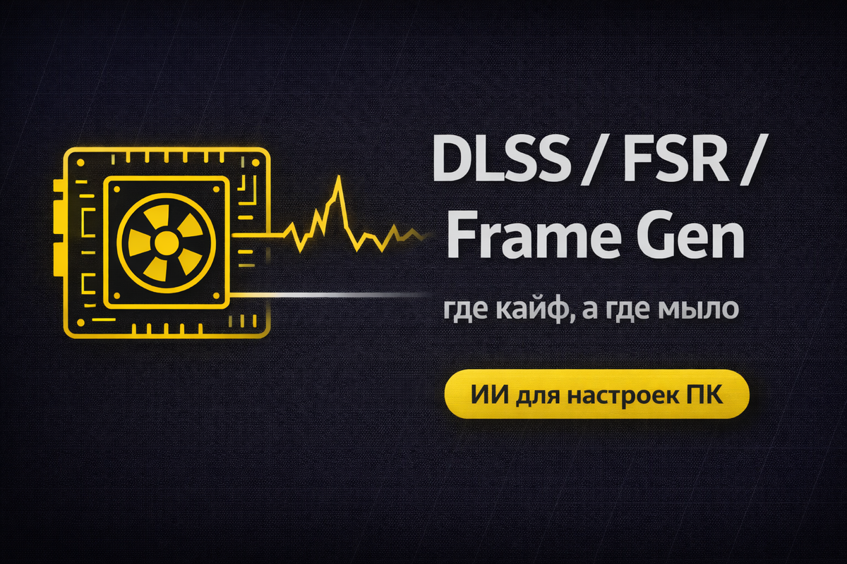 Я регулярно вижу одну и ту же историю: железо вроде нормальное, но игра либо не держит плавность, либо картинка “плывёт”. А потом начинается круг вопросов: “DLSS включать?”, “FSR хуже?”, “Frame Gen реально спасает?” Я объясню по-человечески, но без воды. И дам правила, которые у меня реально работают: что включать первым, где будет “мыло”, и почему Frame Gen иногда делает хуже по ощущениям. DLSS / FSR / XeSS — это апскейлеры. Игра рендерит в меньшем разрешении (например, 1440p вместо 4K), а технология восстанавливает картинку до нужного разрешения. Это почти всегда даёт прирост FPS. Frame Generation (FG) — другая история: он добавляет промежуточные кадры, чтобы движение выглядело более плавным. Это может сильно “поднять FPS на счётчике”, но не всегда улучшает управление. Запомни моё правило: