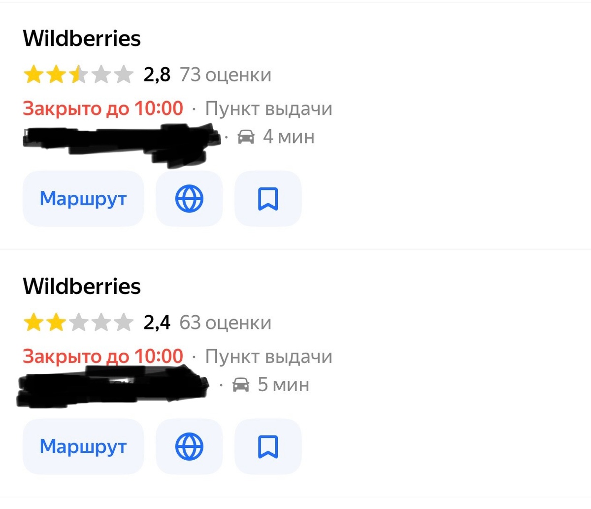 Пару лет назад сотрудница (а возможно и хозяйка) пункта выдачи Валдберрис зная мое расположение к ним, попросила оставить положительный отзыв на Яндекс-картах. В то время у них уже было много отзывов и высокий рейтинг 4.9 балла. Куда же вам столько отзывов, и так все хорошо? Но она сказала, что периодически кто-то оставляет негативные отзывы и их рейтинг падает до 4.8 балла, а за это к ним применяет систему наказаний/штрафов сам Валдберрис. Я удивилась, про такое даже никогда раньше не слышала. Но про себя подумала, что круто, покупатели от такого контроля только выиграют. И вот что мы имеем теперь. Наши ближайшие пункты выдачи Валдберрис имеют рейтинги 2.4 и 2.8 И это отнюдь не случайность. ✔ В одном из этих пунктов работает странная дамочка. Что с ней не так вероятно знает только ее психиатр. Но можно точно сказать, что она очень не любит людей, всех полов и возрастов. Вежливость - совсем не "ее конек". Ни одна выдача товара не обходится без ее грубых и необоснованных комментарие