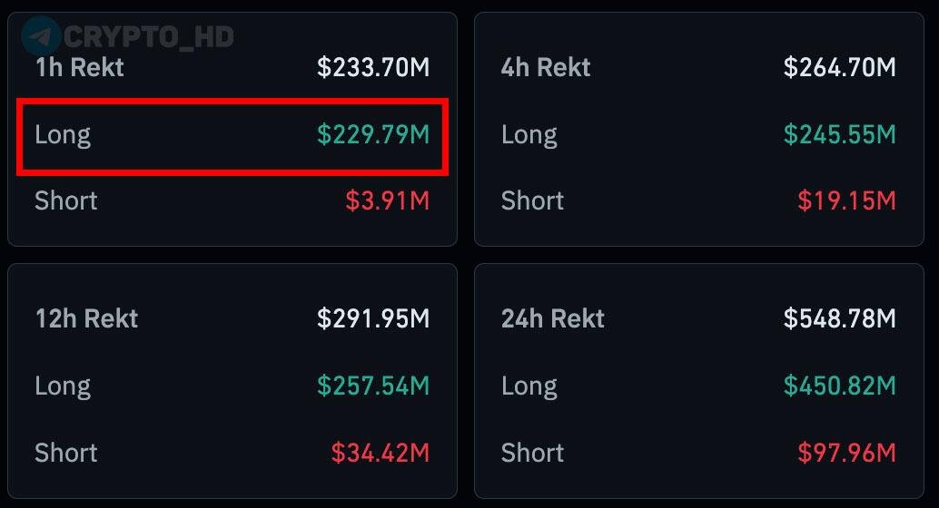 π Π‘oinglass: ΠΠ° 1 ΡΠ°Ρ Π»ΠΈΠΊΠ²ΠΈΠ΄ΠΈΡΠΎΠ²Π°Π½ΠΎ LONG-ΠΏΠΎΠ·ΠΈΡΠΈΠΉ Π½Π° $229,000,000+.