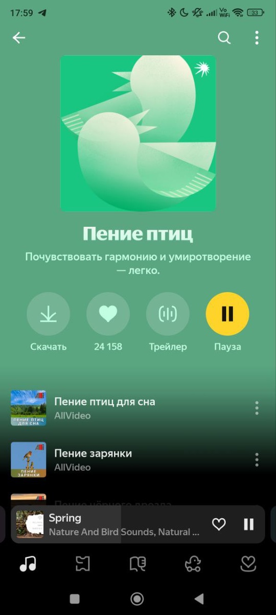 ⏩ Моя социальная батарейка садится довольно часто, и в такие моменты мне хочется послушать спокойную расслабляющую музыку, посидеть в комнате с приглушенным светом и расслабиться. Но с этим у меня была большая проблема, потому что большинство плейлистов обещающих спокойствие либо слишком навязчивые, либо поднимают во мне какую-то тревожность. Но недавно я нашла решение - плейлист с пением птиц 🐦 Конечно, с прогулкой в настоящем лесу это не сравнится, но за неимением лучшего, это очень кайфово. Единственный минус - для моей кошки это не успокаивающий плейлист 😁 В комментариях оставлю ссылку на плейлист в яндекс музыке. Делитесь тоже своими находками хороших плейлистов для расслабления🥲