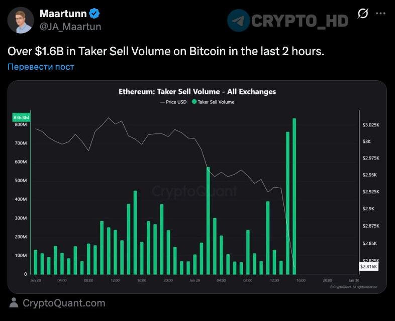 😳 CryptoQuant: На всех биржах было продано BTC на $1,600,000,000 за последние 2 часа (Taker Sell Volume).