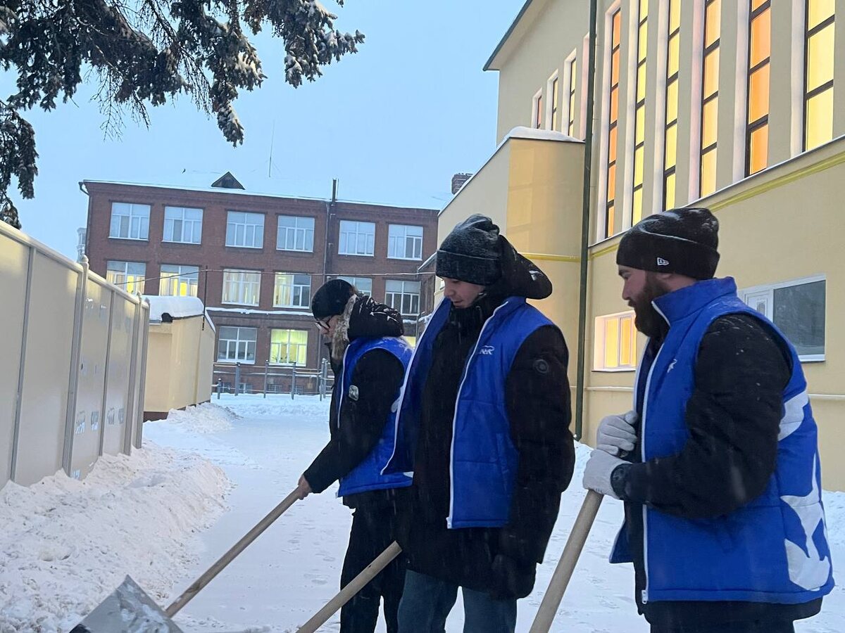 Актив Единой России помог в расчистке снега у школы №1 имени В.П. Екимецкой
