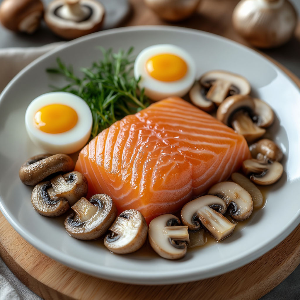 Лосось — один из самых богатых натуральных источников витамина D. Также содержит омега-3 жирные кислоты, которые улучшают усвоение витамина. 💡 Важно:
