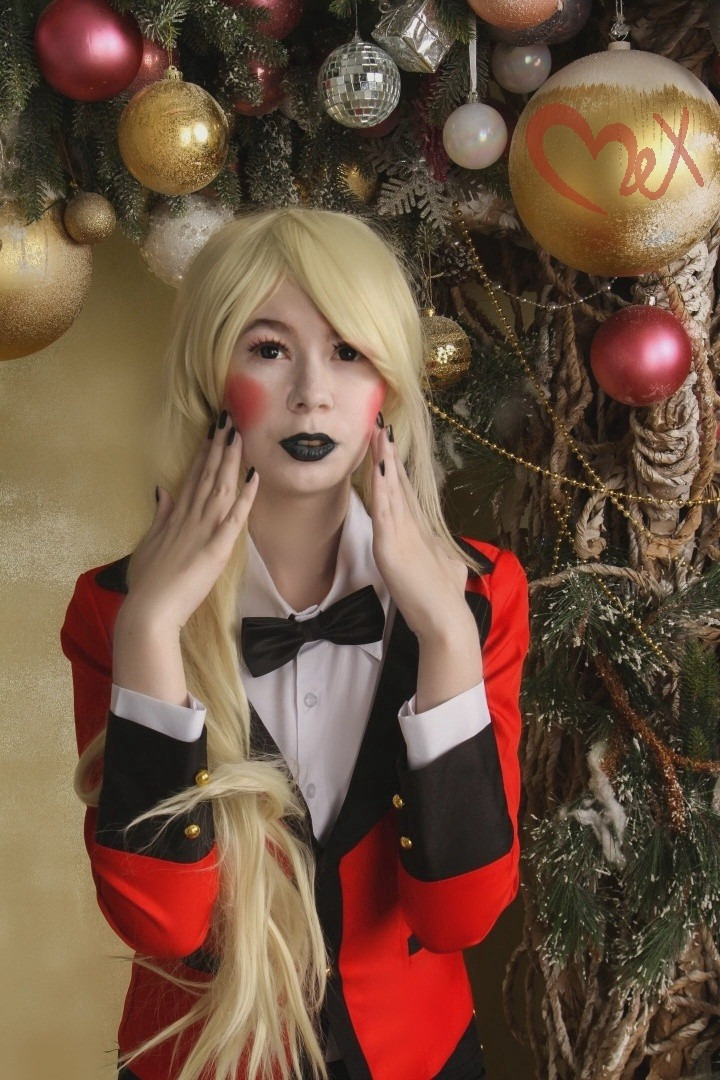 Новогодний образ Чарли Морнингстар из «Отеля Хазбин» будто напоминает, что даже в аду есть место теплу и вере в чудо: аккуратный красно-чёрный костюм, подарки в руках и уютная праздничная атмосфера подчёркивают её искренний, добрый характер и желание сделать мир вокруг хоть немного светлее, превращая этот косплей в тёплую и по-настоящему сказочную новогоднюю историю. Фэндом: Отель Хазбин