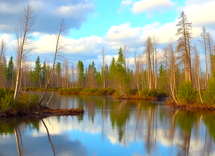 Васюганские болота - самые крупные топи в России и по размерам могут составить конкуренцию той же Швейцарии или Швеции. Однако, они не самые большие в мире, хотя и входят в пятерку мировых болотных гигантов. Васюгания сейчас привлекает к себе любителей крайне экстремального отдыха и исследователей подобных экосистем. Ведь подобные ландшафты тоже имеют статус дыхательной системы планеты и удерживают в своих глубинах колоссальное количество углерода. Там даже есть экологическая тропа из деревянных настилов. Однако гулять по болотным угодьям физически и эмоционально непросто. На стони километров пейзаж не меняется. Представьте себе, вы идёте несколько десятков километров по живому ковру из мха толщиной несколько десятков сантиметров, а под слоем сфагнума вода. Здесь везде вода и 100% влажность. Если вырыть в относительно сухом месте небольшую яму, то за полчаса она наполнится чистой питьевой водой. Пейзаж не меняется сутками, кривые деревца и бескрайние поляны мха. Заблудиться в подобны