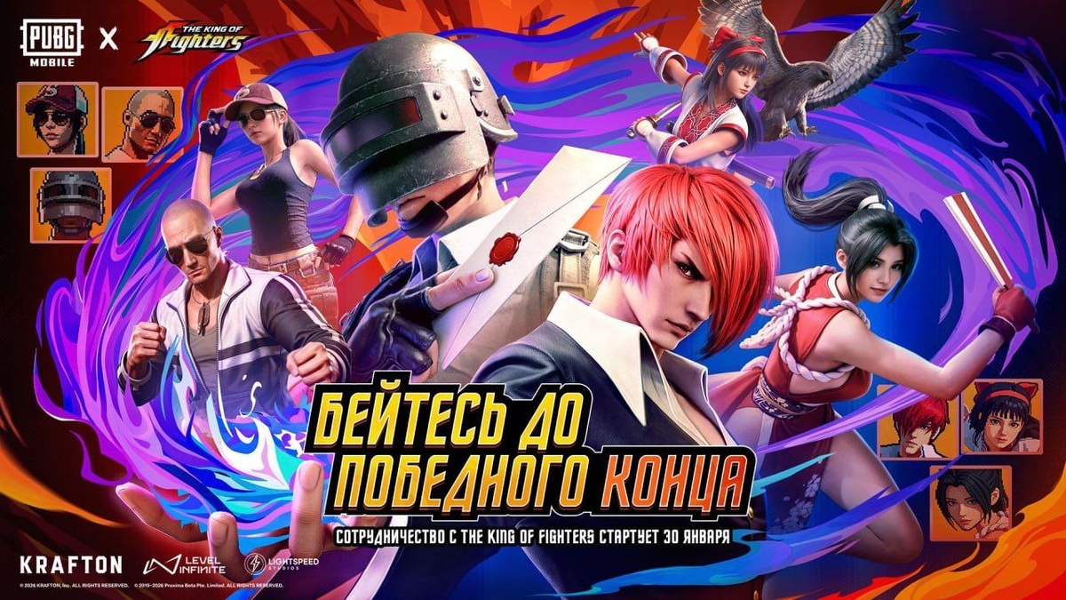 ! Уже завтра стартует коллаборация с King of Fighters, в которую войдут новый призовой путь и рулетка. В призовом пути, как и всегда, будут два мифических костюма, а также различные награды по мелочи — стандартный, но приятный набор. А чтобы вам не пришлось тратить свои кровные, завтра проведём розыгрыш 5 призовых путей. Не забудьте принять участие! Наш бот для пополнения UC: @OneTwoPay_bot 😎 PUBG Mobile