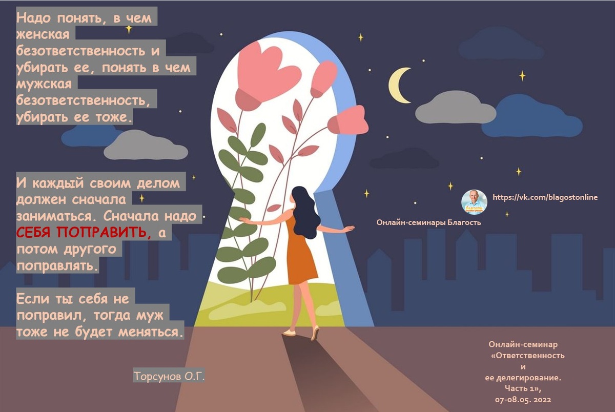 Надо понять, в чем женская безответственность и убирать ее, понять в чем мужская безответственность, убирать ее тоже