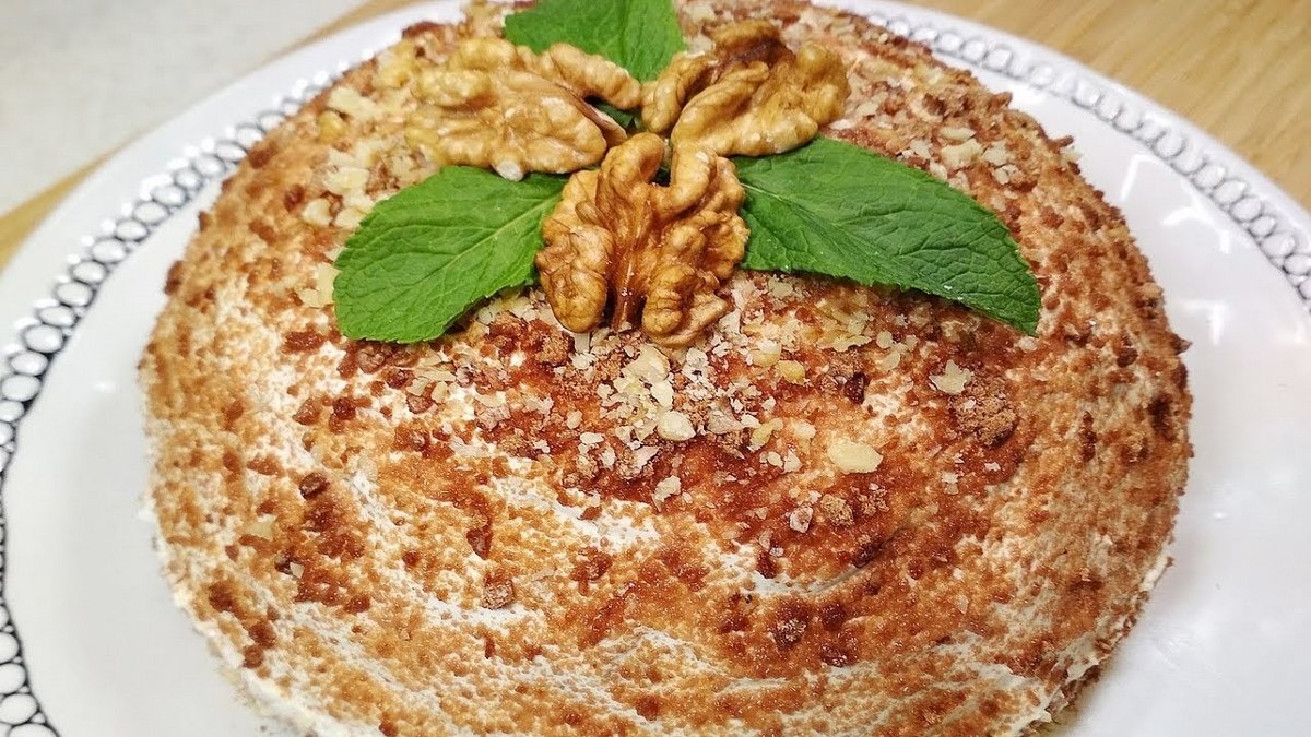 Последний слой — пряники с кремом. Накрываем торт плёнкой и убираем в холодильник минимум на 4–6 часов, а лучше — на ночь.