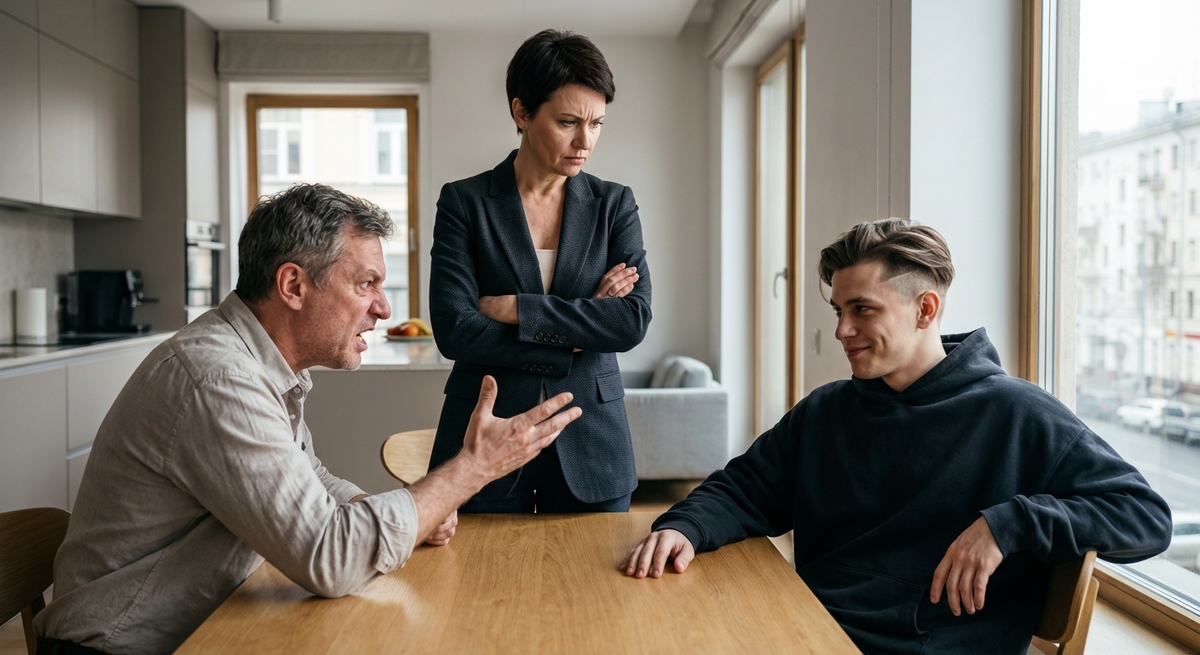В комнате повисла тишина. Артем ухмылялся, глядя на отца, уверенный в своей победе. Виктор переводил взгляд с жены на сына, лицо его пошло красными пятнами.