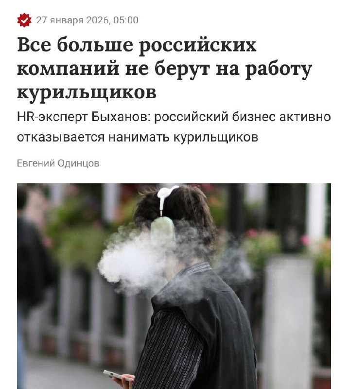 ❗️В России растёт число компаний, отказывающихся нанимать курящих сотрудников