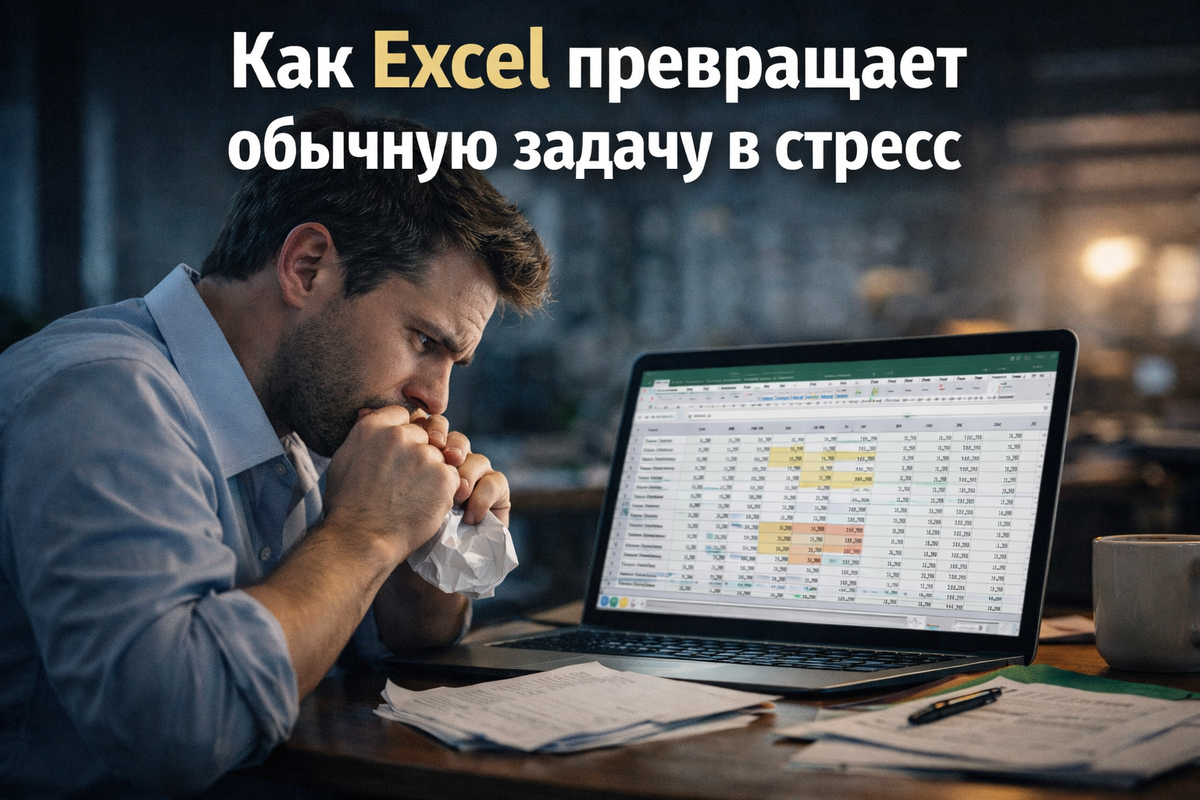 Часть 2. Как Excel превращает обычную задачу в стресс. Почему простая работа в Excel вызывает напряжение, страх ошибок и выгорание. Реальные причины офисного стресса в таблицах. Он начинается раньше. В момент, когда ты открываешь файл и понимаешь, что ошибка здесь будет заметнее, чем в любом другом месте. Письмо можно переписать. Слово — уточнить. Мысль — объяснить. В Excel ты сразу оставляешь след. Цифра либо верна, либо нет. И этот факт делает обычную задачу источником постоянного напряжения. Excel создаёт стресс не сложностью, а контекстом, в котором его используют. Таблица почти всегда: Ты работаешь не просто с ячейками — ты работаешь под потенциальным разбором. Они есть почти у всех, но редко осознаются. 1. Отложенная ошибка
