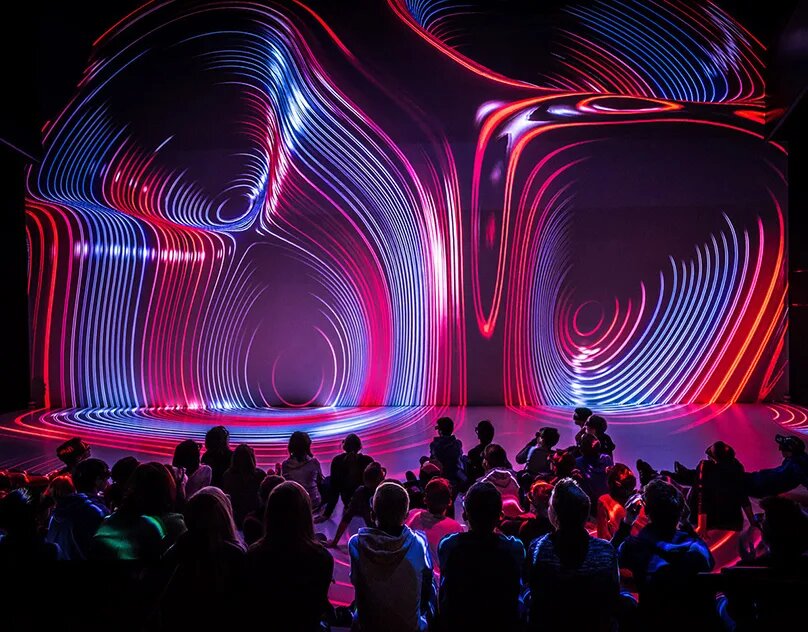 - Интерактивное искусство: Произведение реагирует на присутствие, движение, голос или данные зрителя. Работа Рафаэля Лозано-Хеммера «Поле облаков», где тысячи ламп зажигаются от пульса зрителей, превращая тело в инструмент создания света.