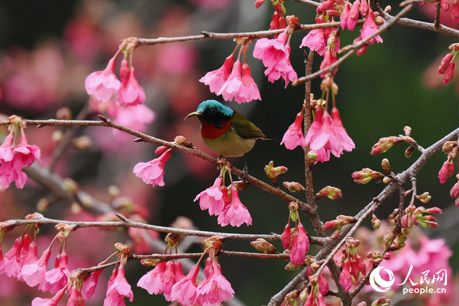 В последние дни в национальном лесном парке Ляньхуа города Сямэнь провинции Фуцзянь /Юго-Восточный Китай/ распускаются целые массивы вишни. Птицы, привлеченные красотой, слетаются на ветки и наполняют все вокруг мелодичным щебетом. Эта картина создает ощущение гармонии и умиротворения, сообщает сайт «Хуаньцюван».