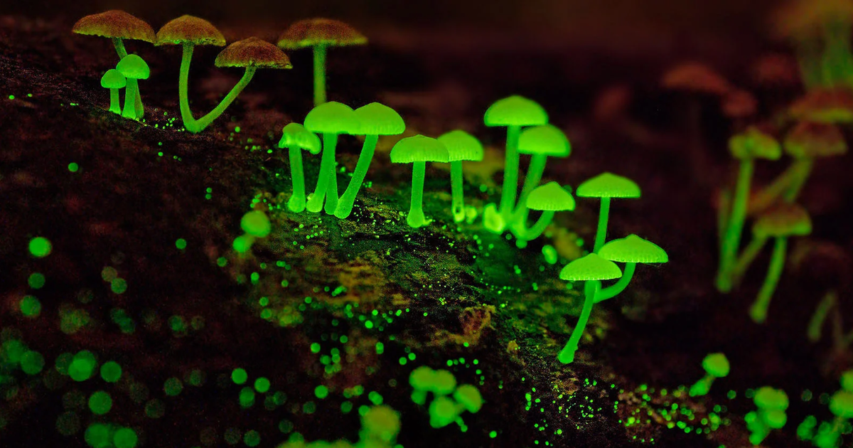 Для этого нужно оказаться в лесах Японии или Бразилии. Они вырастают из мельчайших спор, чтобы озарить ночной лес мягким зеленоватым свечением. Их свет не похож ни на что искусственное — это живое, дышащее свечение самой природы.