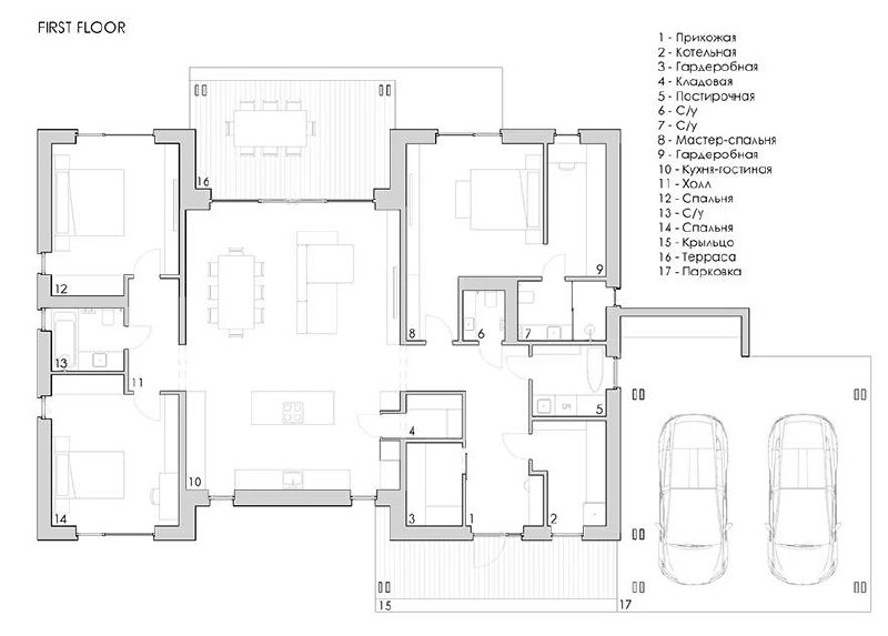 В основе проекта — одноэтажное решение, где все пространство развернуто вокруг большой кухни-гостиной. Мастер-спальня с гардеробной, приватные комнаты, удобные хозяйственные зоны — каждый элемент планировки логичен и на своем месте. Панорамные окна связывают интерьер с садом, превращая зелёный пейзаж в часть повседневного быта. Это дом, в котором простота форм превращается в гармонию жизни. Проект: #balance_archdepo
