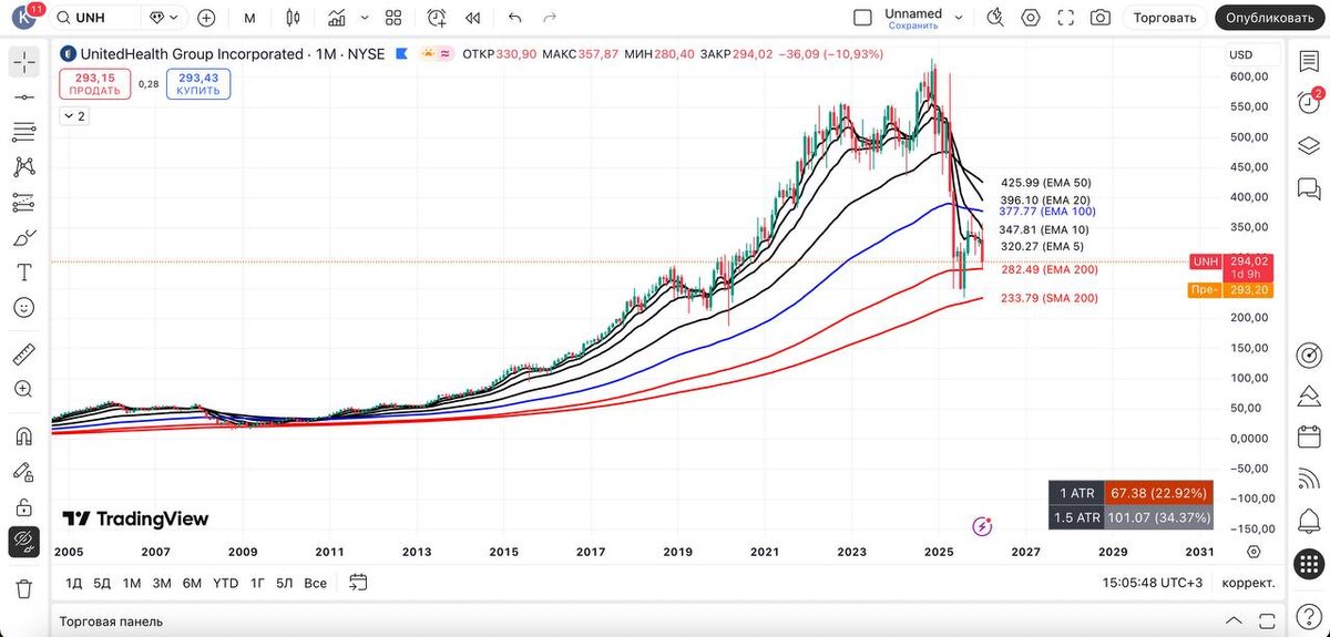 Помните про $UNH? На которой заработали более 100%, увидев её на закономерности. Очень точно вошли в тот раз, и ювелирно вышли. Сейчас после отчёта вновь видим у закономерности 200 EMA M. Есть ещё одна акция, которая находится также на месячной закономерности — $TGT. Стратегические точки входа, которые могут привести к росту на годы от этой закономерности и иметь относительную силу. Добавляем? #unh #tgt #закономерность #фондовый_рынок #трейдинг_сша #технический_анализ #америка