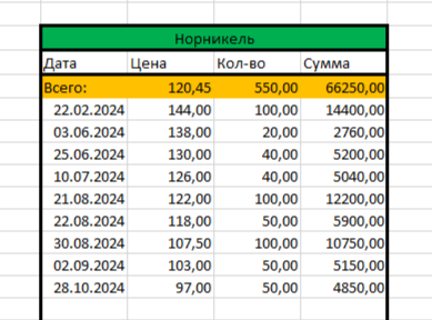 Покупки этой акции происходили у меня в 2024 году, с февраля по октябрь, со 144 до 97 рублей за штуку, в портфеле сформировалась средняя цена 120,45 рублей.