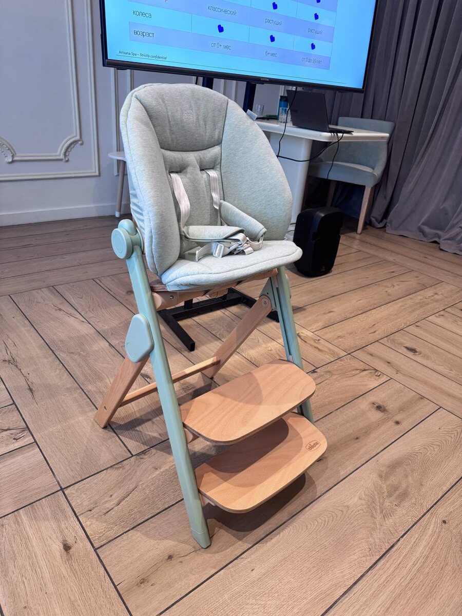 Вот этот стул! Божечки, что за прелесть. Я его обожаю. Во-первых, он очень компактный. Во-вторых, с рождения и до 100 лет😀 ну и просто он безумно красивый. Еще компактно складывается, имеет кучу регулировок всего, что нужно… в общем ❤️