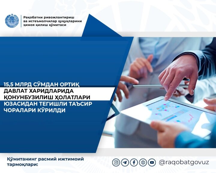 В результате проведённых мероприятий, как сообщается, установлено, что тендеры с первоначальной стоимостью более 15,5 млрд сумов не соответствовали требованиям статьи 29 Закона "О конкуренции". В частности, в документац
