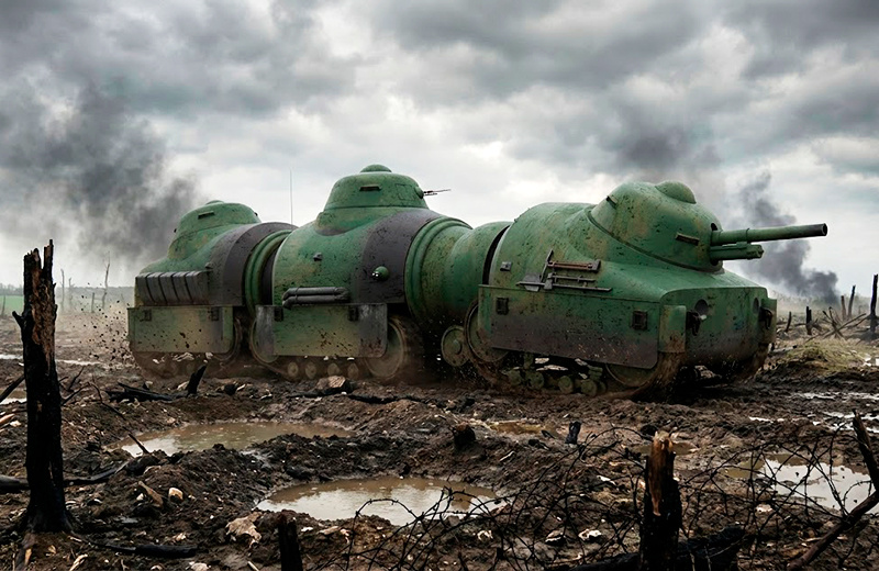 Французская школа танкостроения всегда знала толк в экстравагантной технике — от Renault FT до современного гиганта Leclerc. Но проект Виктора-Бартелеми Жаке стоит особняком. Его Train d’Assaut («Штурмовой поезд») не просто машина, а смелый эксперимент, так и застывший в виде чертежей на исходе Второй мировой.