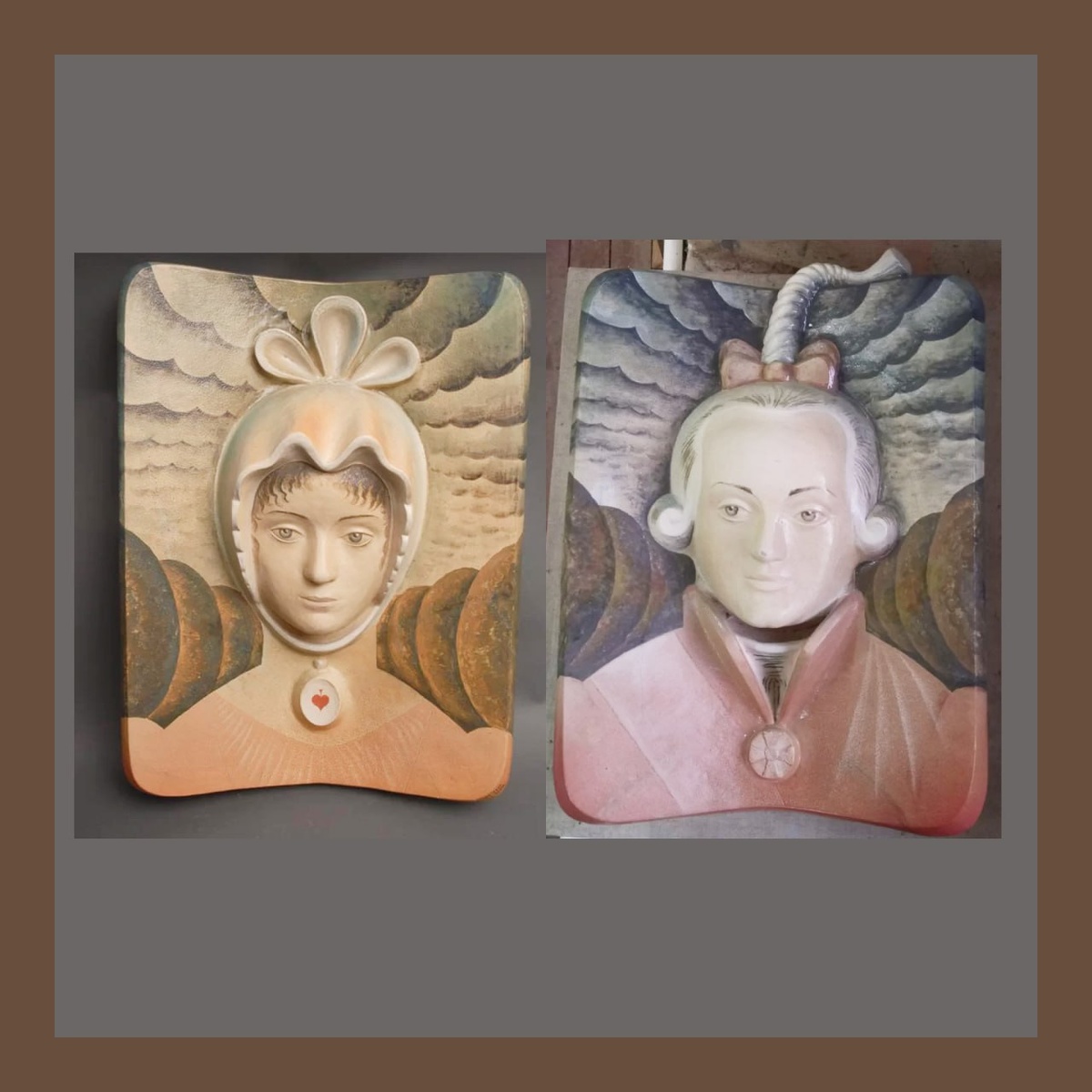 династии. На основании горельефов размещена авторская надпись в тесте: «VALERI МАЛОЛЕТКОВ MOSCOW RUSSIA», оставил ее художник Малолетков В.А. ▪️Горельеф "Прасковья Жемчугова" 2001 г. ▪️Пласт декоративный «Николай Шереметев». 2001 г. #Керамика_стекло_фарфор