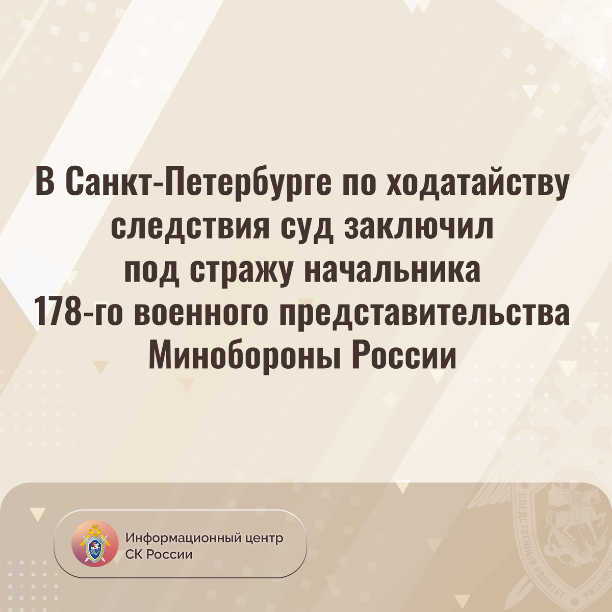 В Санкт-Петербурге по ходатайству следствия суд заключил под стражу начальника 178-го военного представительства Минобороны России